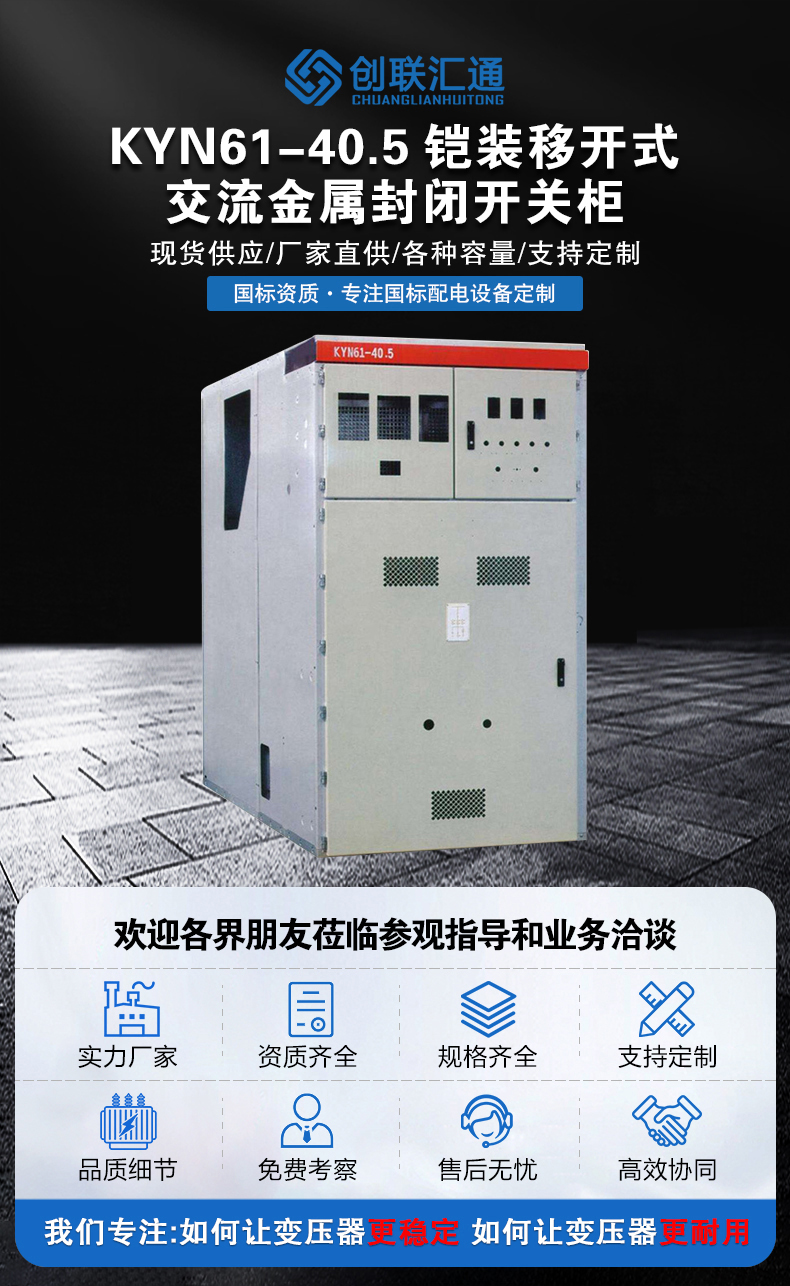 KYN61-40.5型鎧裝移開式交流金屬封閉開關(guān)柜系三相 交流50Hz,額定電壓40.5kV的戶內(nèi)成套配電裝置。作為發(fā)電廠、變電站及工礦企